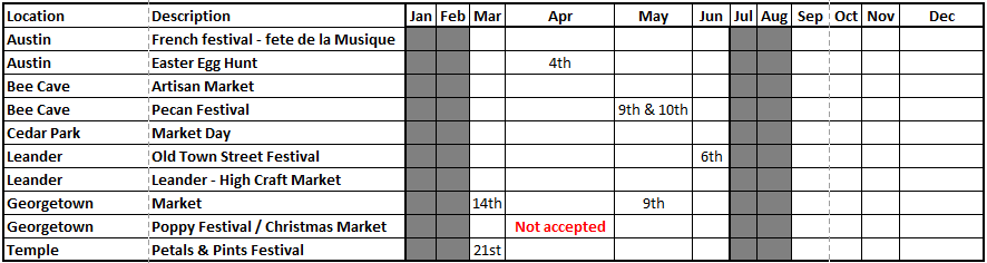 You will be able to meet us at the following markets through 2026.